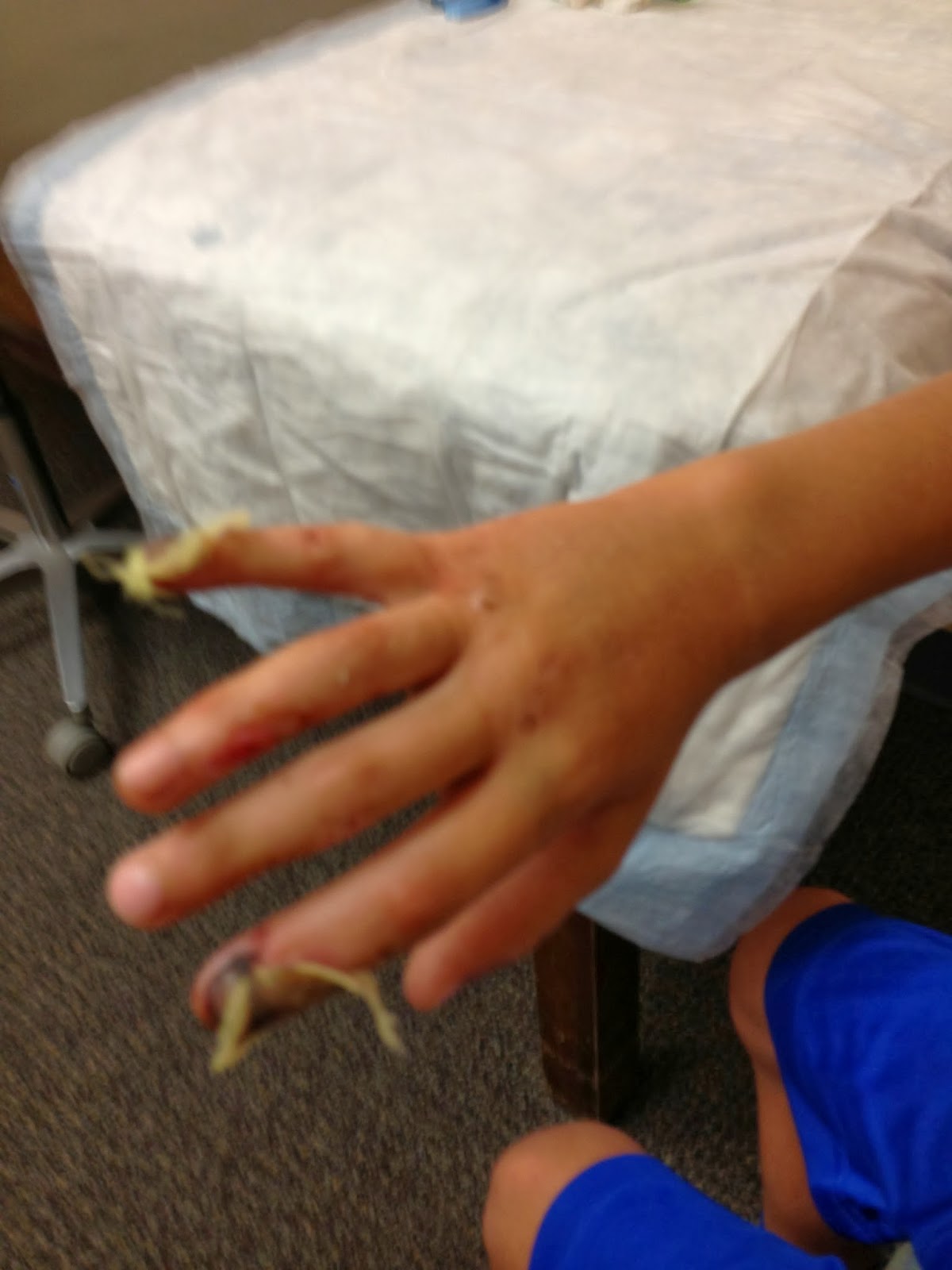 They rewrapped my fingers and gave me some pain medicine up my nose.